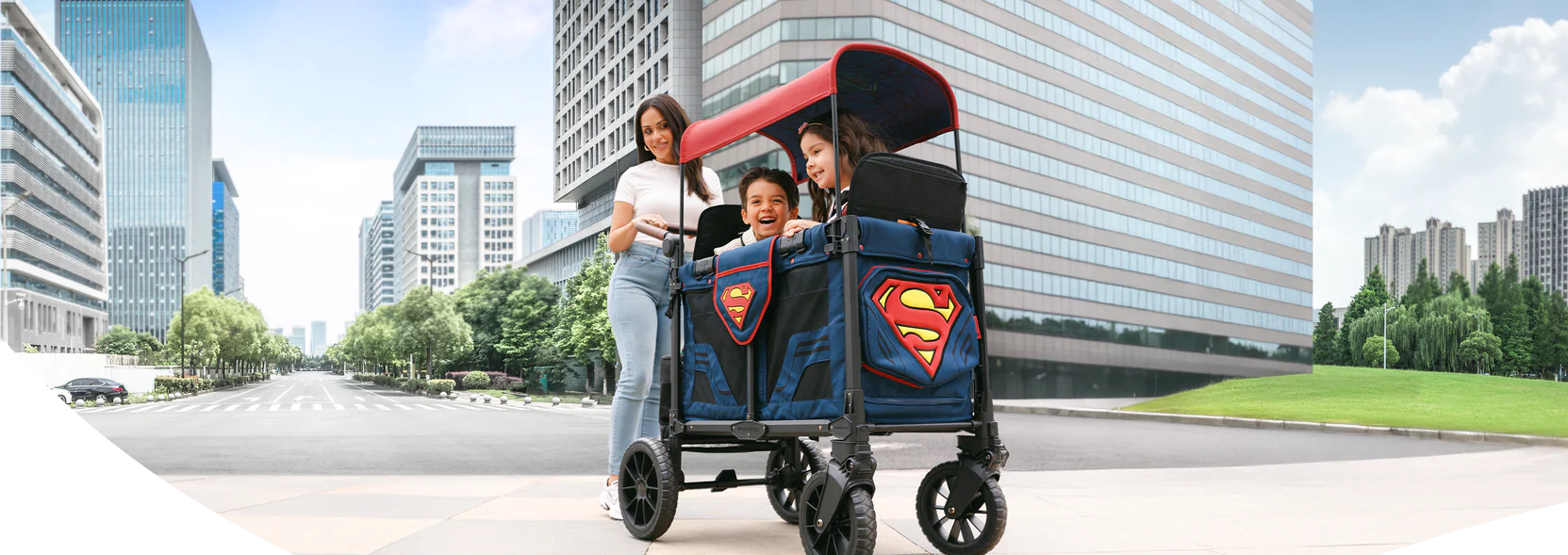 是的!超人嬰兒車隨時可用。它配備耐用的加大號車輪和加強車架,可在公園、碎石路、不平整的人行道等各種路面上輕鬆滑行。無論您的家人去哪裡,這款嬰兒車都能跟上您的步伐——無需披風。